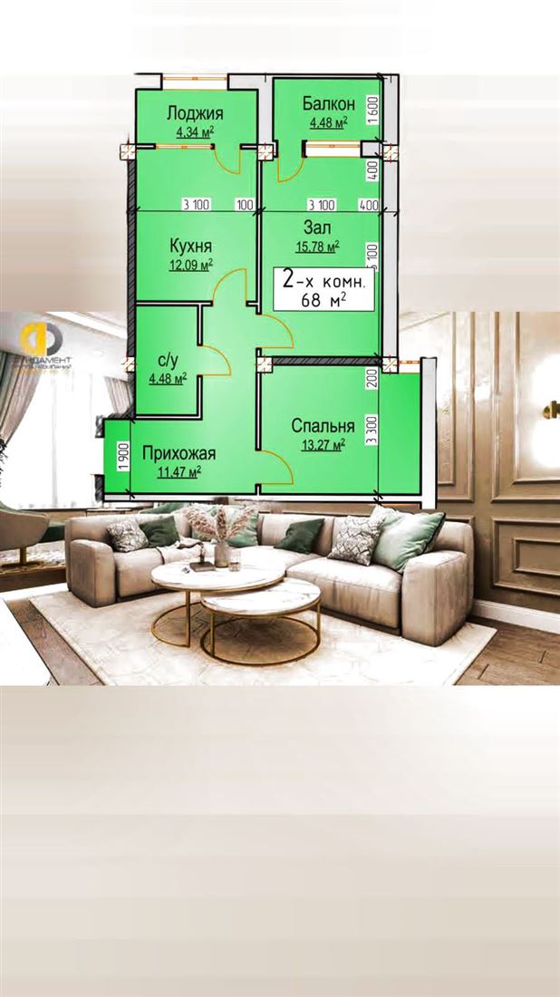 Площадь: 68 м2